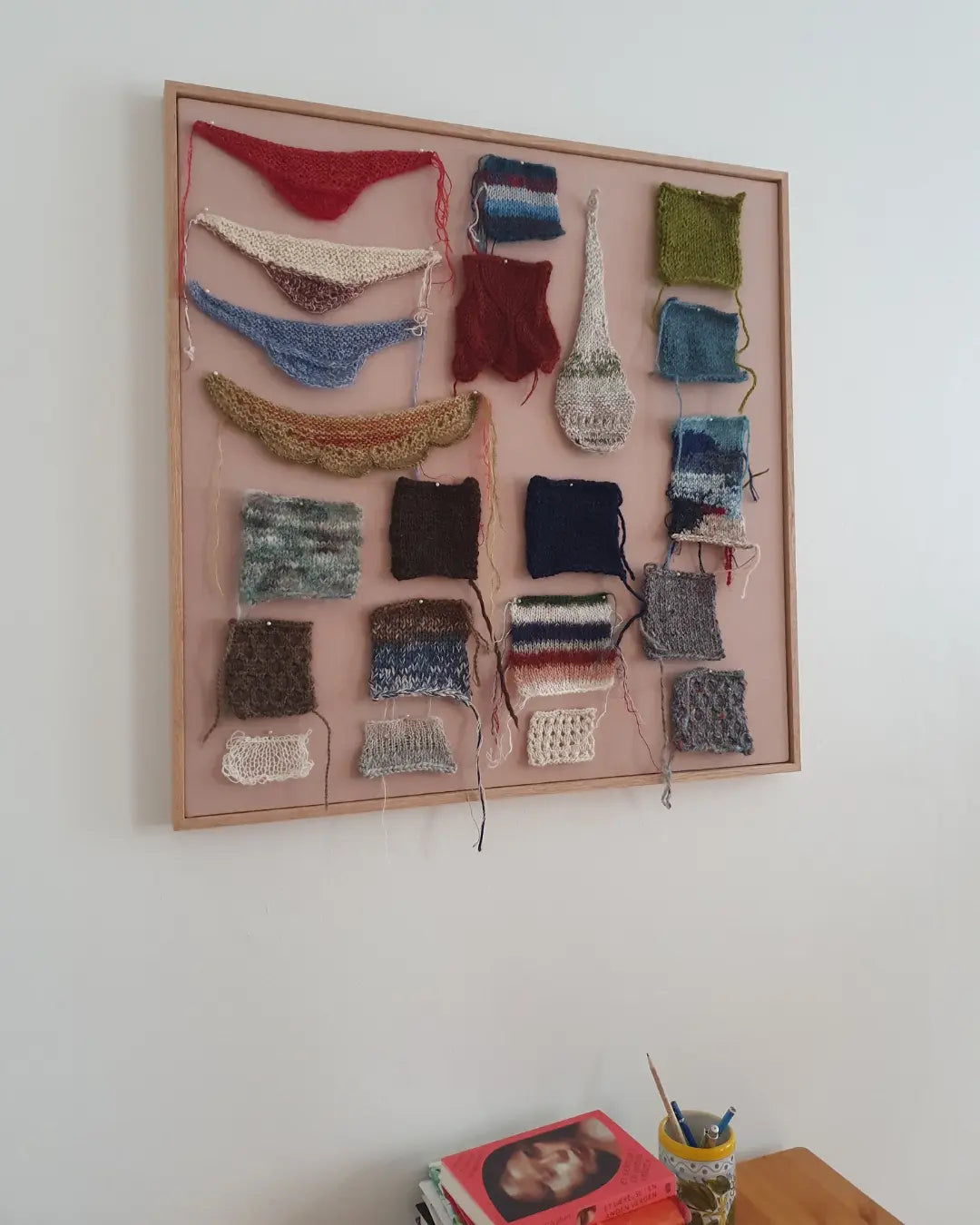 Materiale: Lillafarvet hør indrammet i massiv egetræsramme